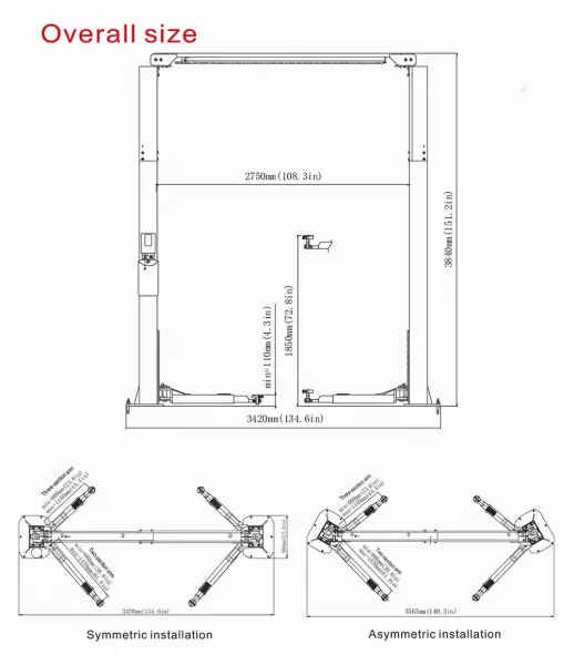 Overall Width for Symmetric Installation / Asymmetric Installation 3420mm / 3563mm