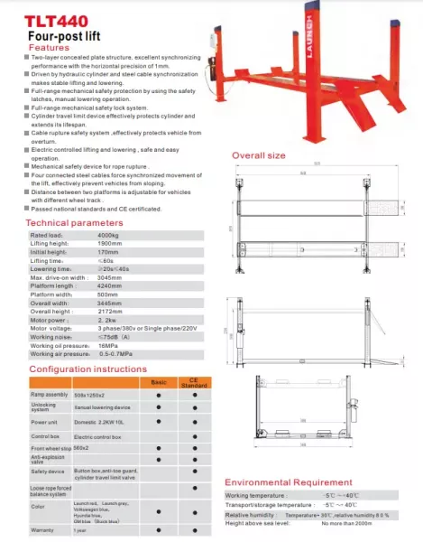Launch TLT440 4-Post Service Lift – 4000KG Capacity | Professional Vehicle Maintenance Solution